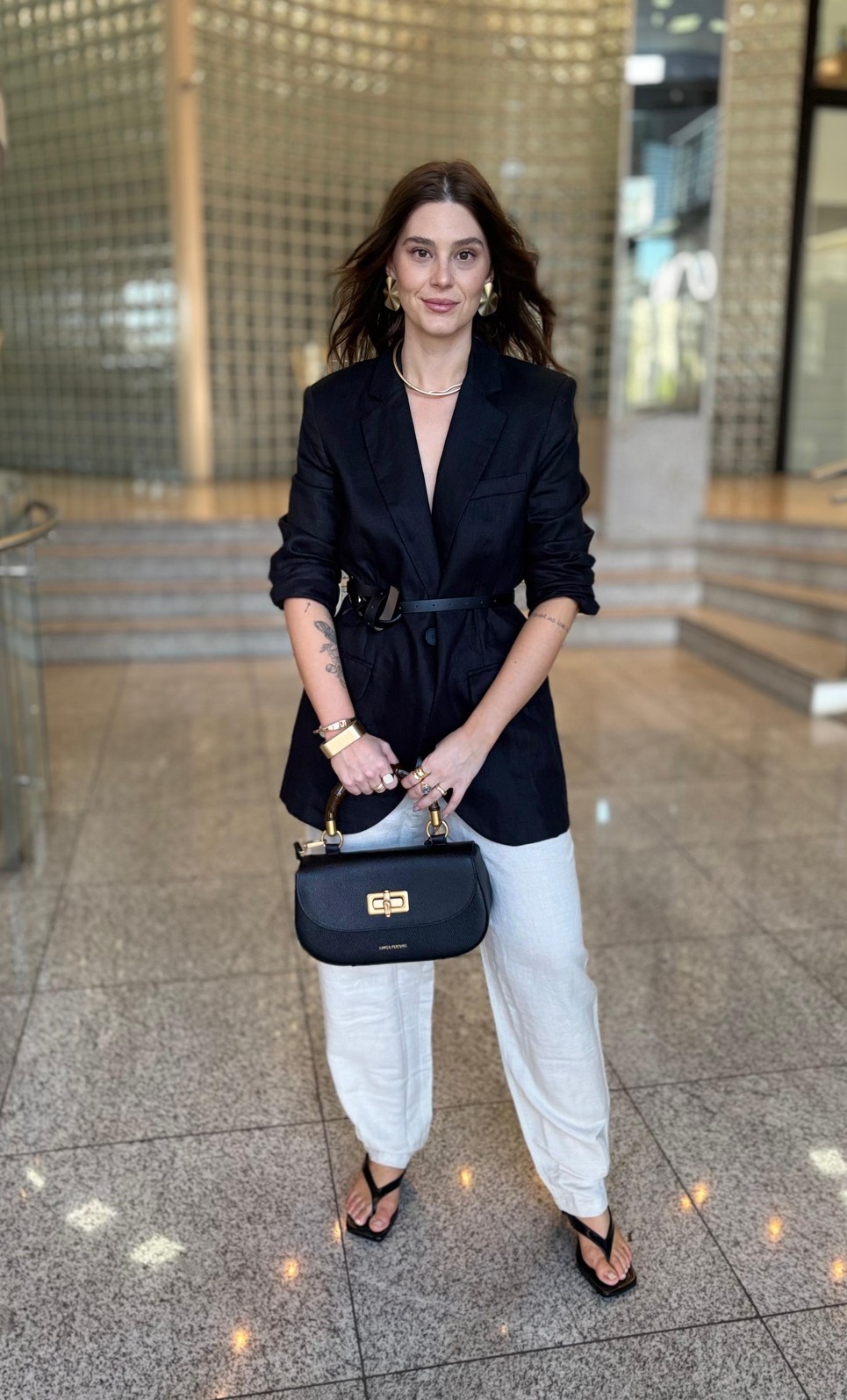 Funcionalidade: Ideal para composições de impacto com pouco esforço — do office look refinado ao styling urbano com jeans e sandália, funcionando como peça-chave de elevação instantânea