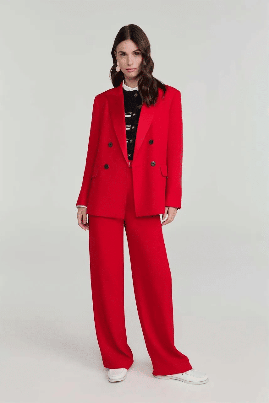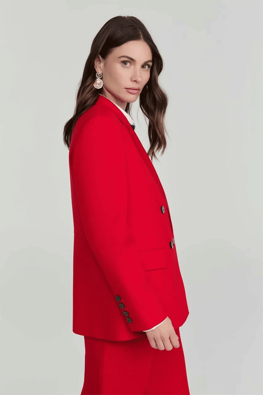 Blazer confeccionado em alfaiataria, com modelagem regular e comprimento regular. Possui manga longa, decote transpassado e fechamento por botões, além de gola com lapela e bolsos com lapela que reforçam o visual clássico da peça. Versátil e elegante, é ideal para composições formais ou produções sofisticadas no dia a dia, transitando com facilidade entre looks de trabalho e ocasiões especiais.