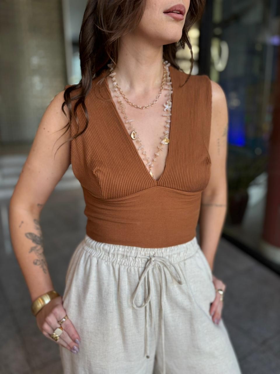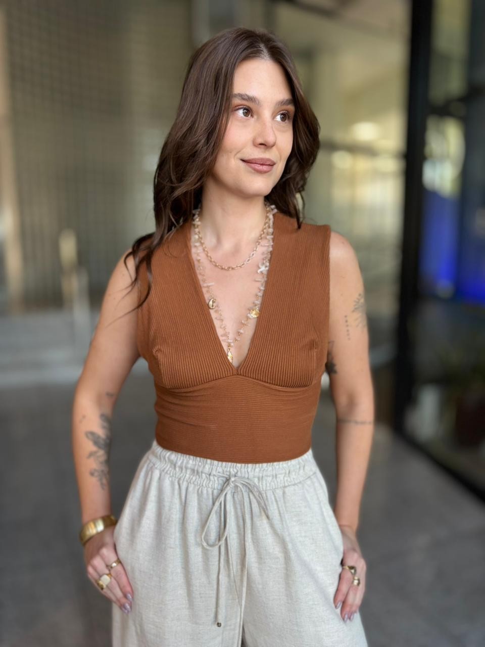 A Blusa Barra Dupla Marrom Canelada Cropped da Animale é aquela peça indispensável para quem ama um visual minimalista com informação de moda. O tom marrom sofisticado transmite elegância contemporânea, enquanto o efeito canelado valoriza a silhueta com charme. Moderna e versátil, é o tipo de peça que transforma até as combinações mais básicas em produções estilosas.
