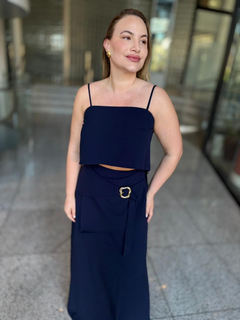 BLUSA DE ALCA FRENTE UNICA AZUL MARINHO LANÇA PERFUME