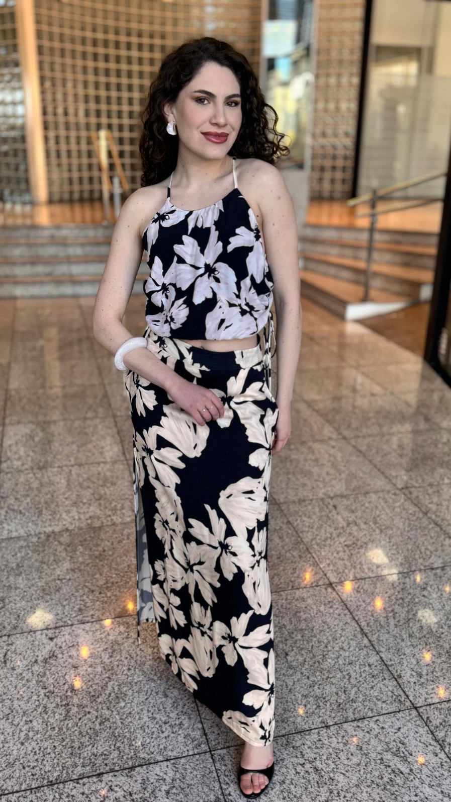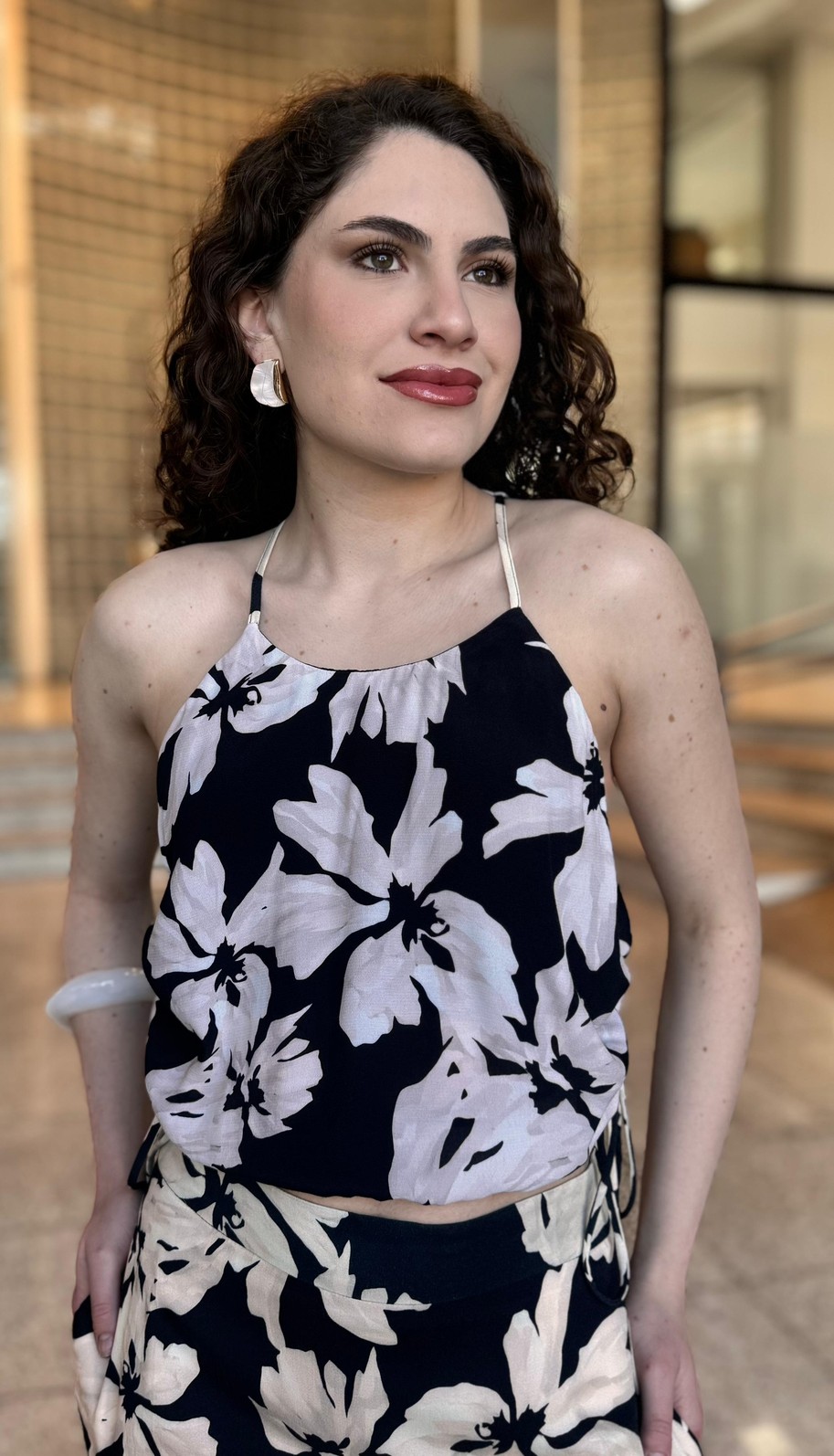 A Blusa Estampada Lírios da My Place é a definição de leveza e estilo. Sua estampa floral em contraste sobre o fundo escuro garante sofisticação e modernidade, enquanto a modelagem delicada com alças finas valoriza a silhueta de forma natural. Uma peça que une frescor e versatilidade, perfeita para compor looks descomplicados e elegantes.