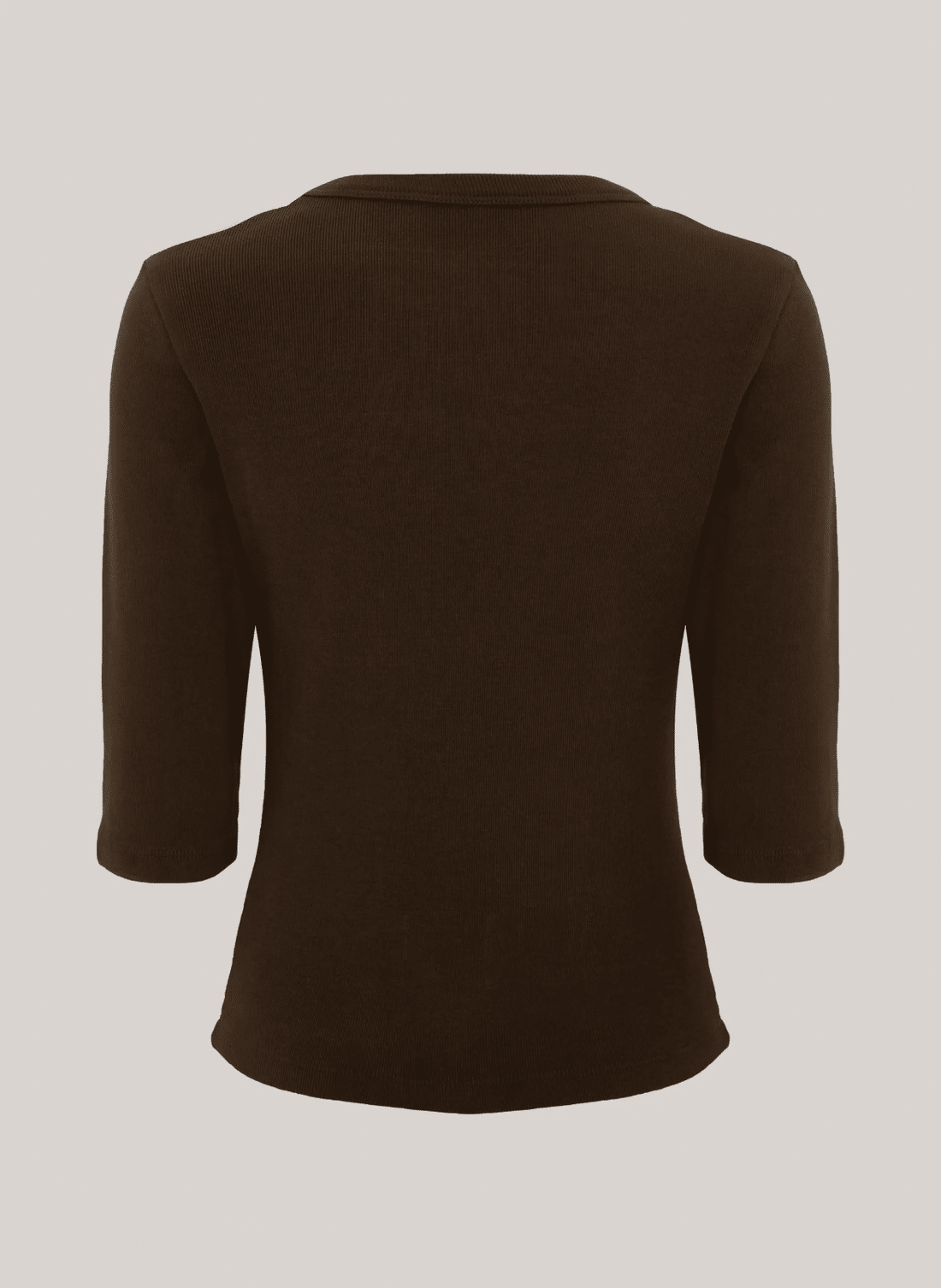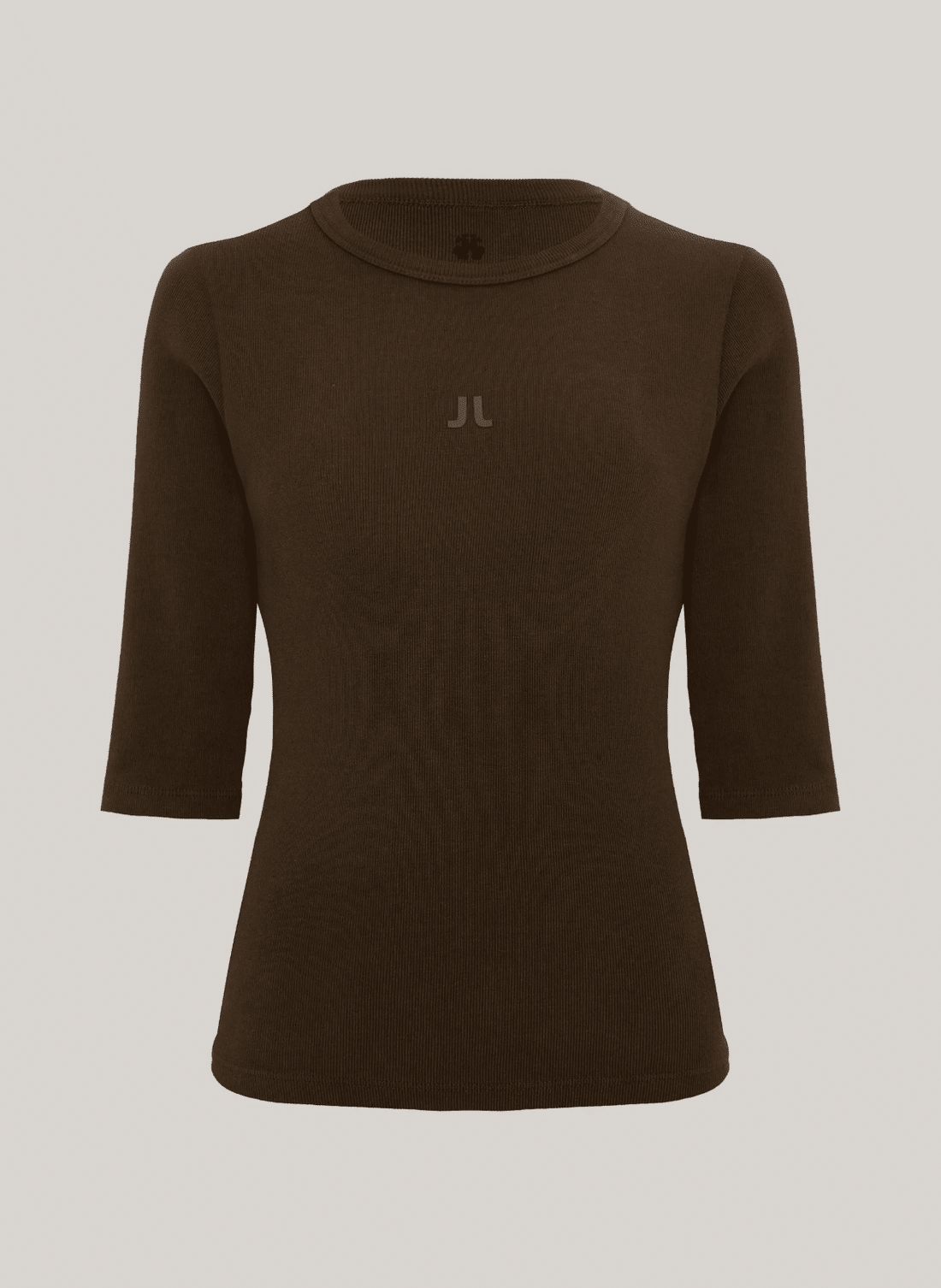 Enfrente o mundo com coragem! Nossas blusas são para quem busca destacar sua essência em qualquer lugar, a qualquer hora. Confeccionada em malha canelada, a Blusa possui modelagem justa,gola careca, detalhe da lago em relevo mangas 3/4 e acabamento canelado. Cor: Marrom