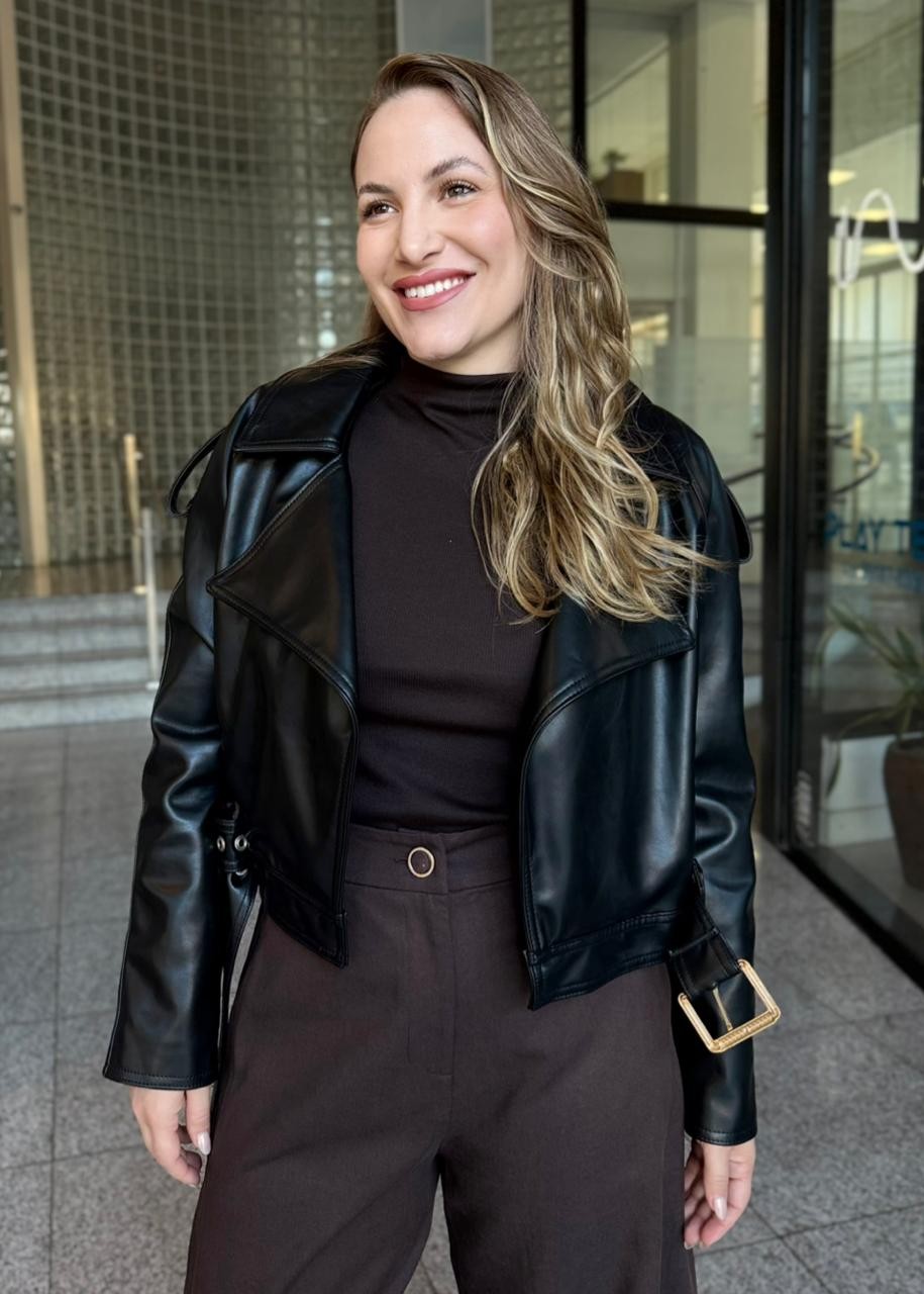 Blusa confeccionada em algodão Pima com modelagem slim e comprimento levemente curto. Possui gola alta e mangas curtas, em design minimalista e elegante. O tecido de toque suave e caimento ajustado valoriza a silhueta, trazendo conforto e sofisticação ao look básico.