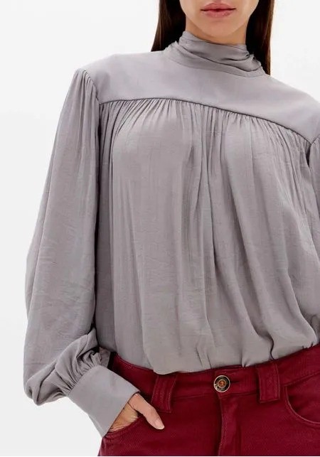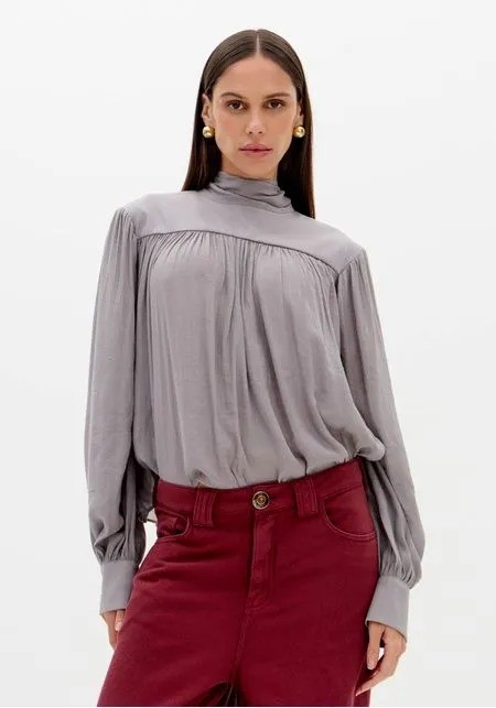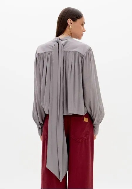 Confeccionada em tecido leve sem elasticidade, a blusa possui modelagem ampla, mangas longas e caimento solto. A gola com tira para amarração torna a peça versátil e elegante, perfeita para valorizar o seu look do dia. Aposte!