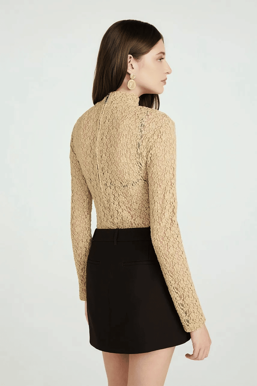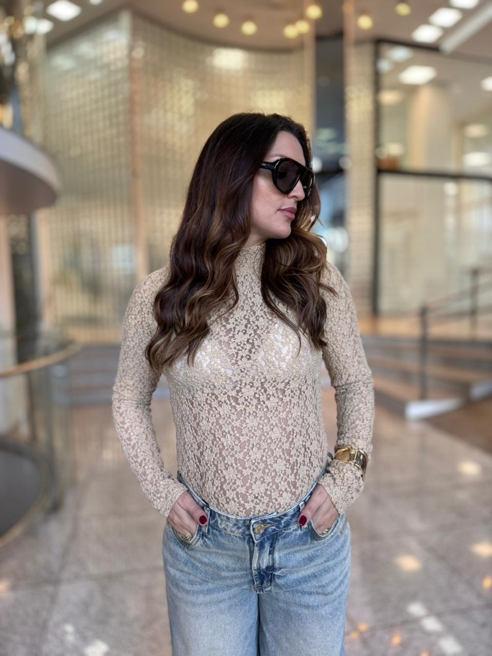 O body manga longa Erika traz sensualidade e sofisticação em uma proposta contemporânea. A modelagem slim valoriza a silhueta, enquanto a renda adiciona delicadeza e textura ao visual. A gola alta equilibra a composição e o zíper de metal reforça o toque moderno da peça.