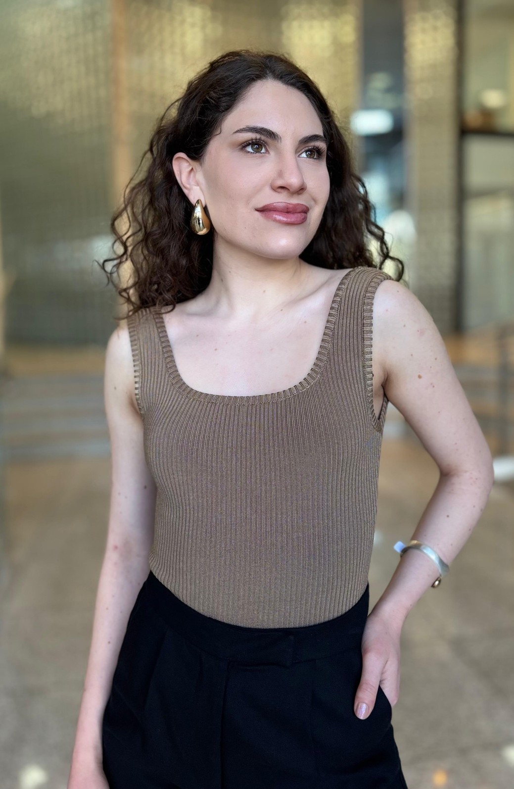 O body em tricot traz modelagem slip ajustada ao corpo e design regata com decote quadrado. Com fechamento por botão de pressão, é uma peça versátil que une conforto e estilo em uma proposta minimalista e atemporal.