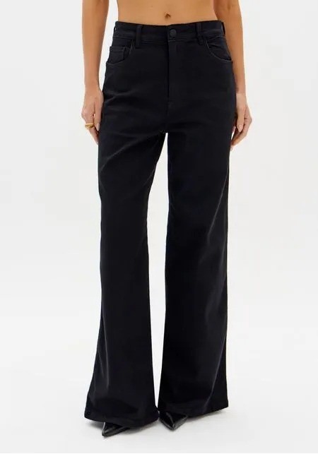 CALCA JEANS WIDE LEG HIGH PRETA LANÇA PERFUME