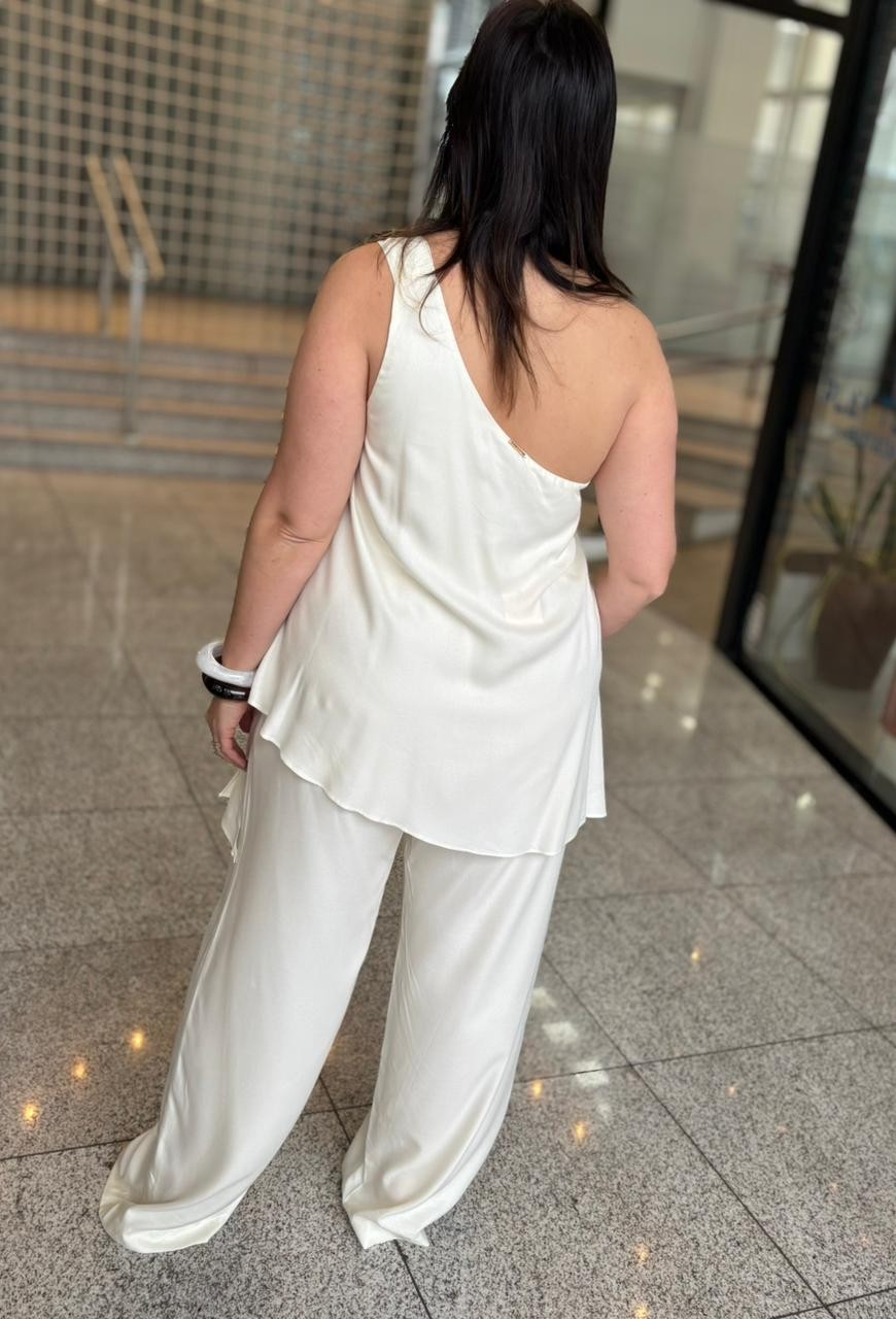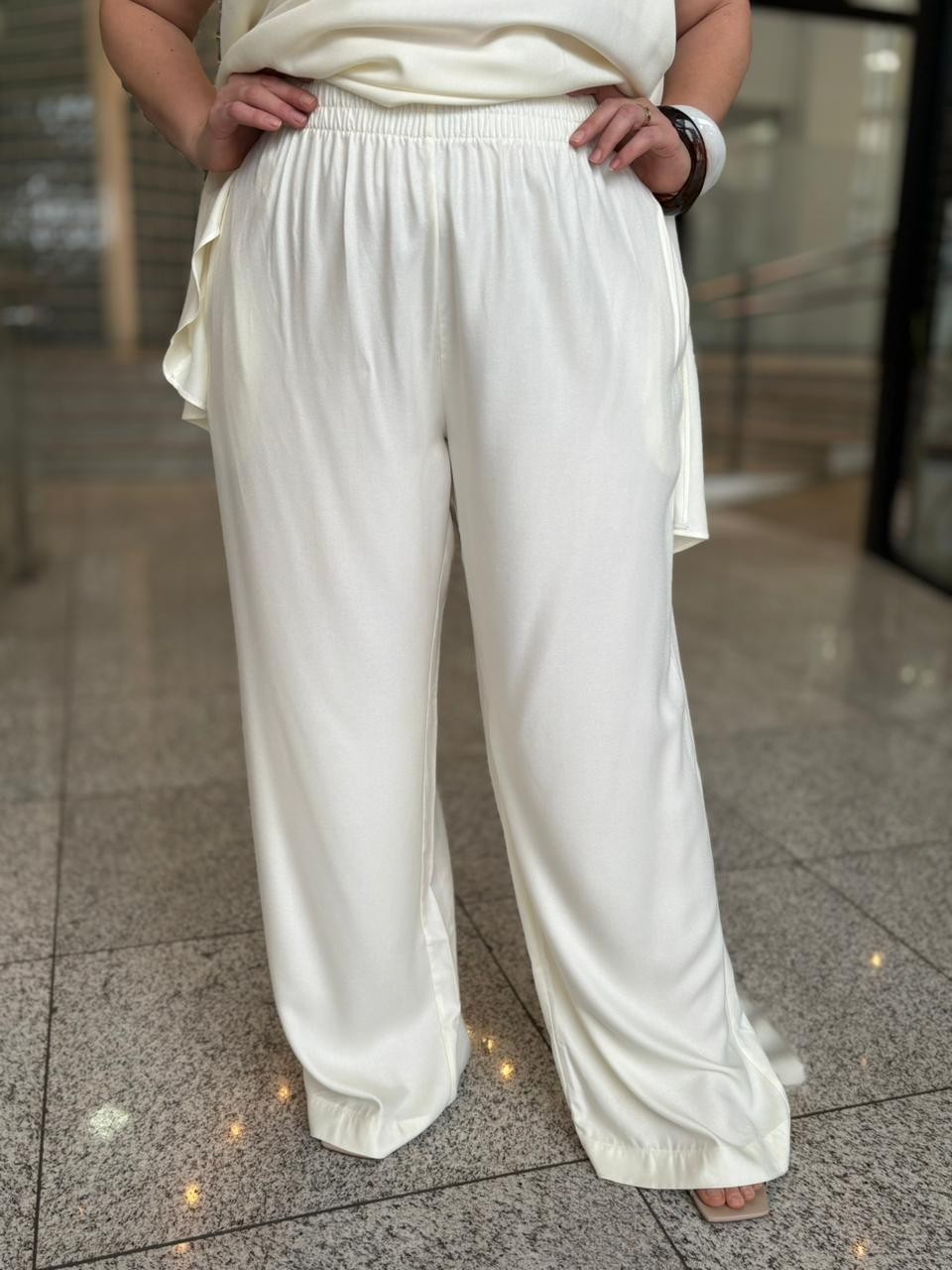 CALCA RETA CINTURA ALTA OFF WHITE LANÇA PERFUME