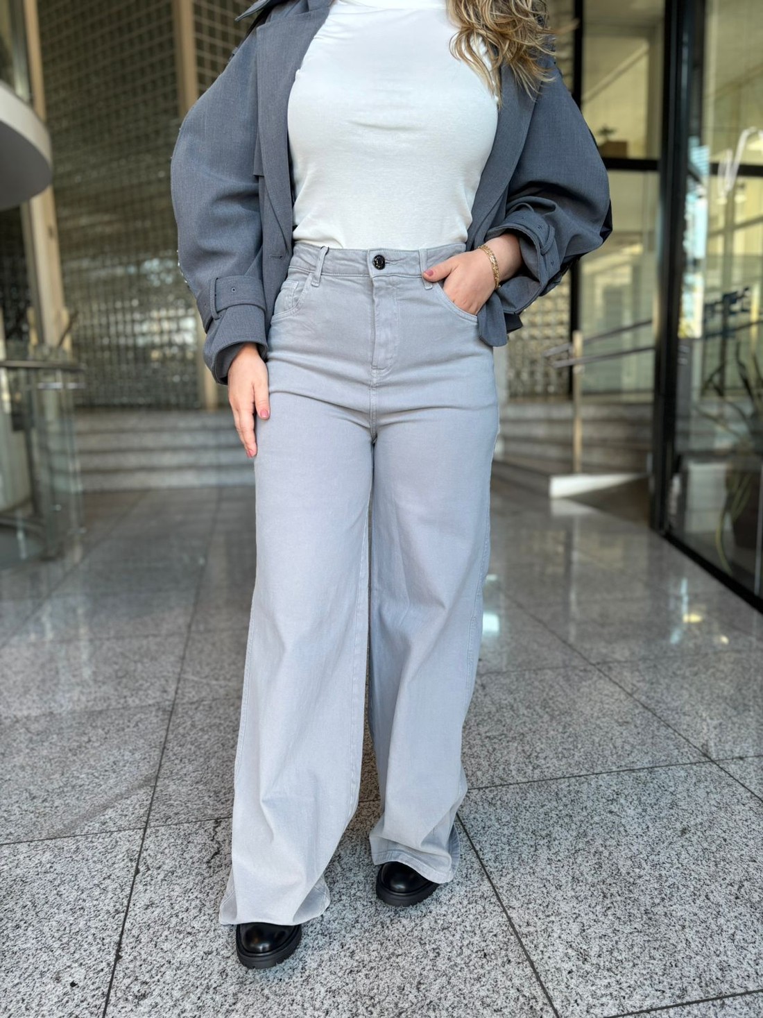 AdicionarCALCA SARJA RELAXED CINTURA MEDIA CINZA LANLÇA PERFUME
