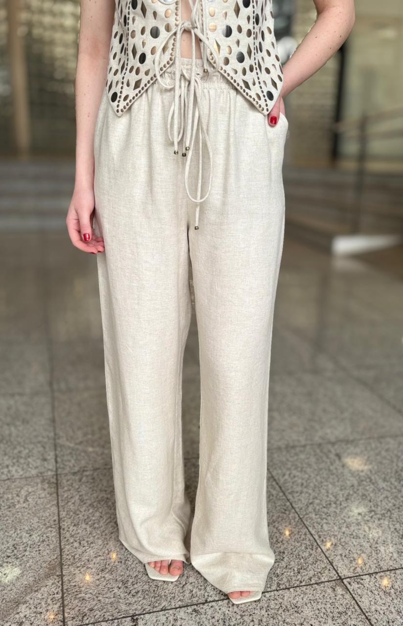 CALCA WIDE LEG CINTURA ALTA COM LINHO LANÇA PERFUME