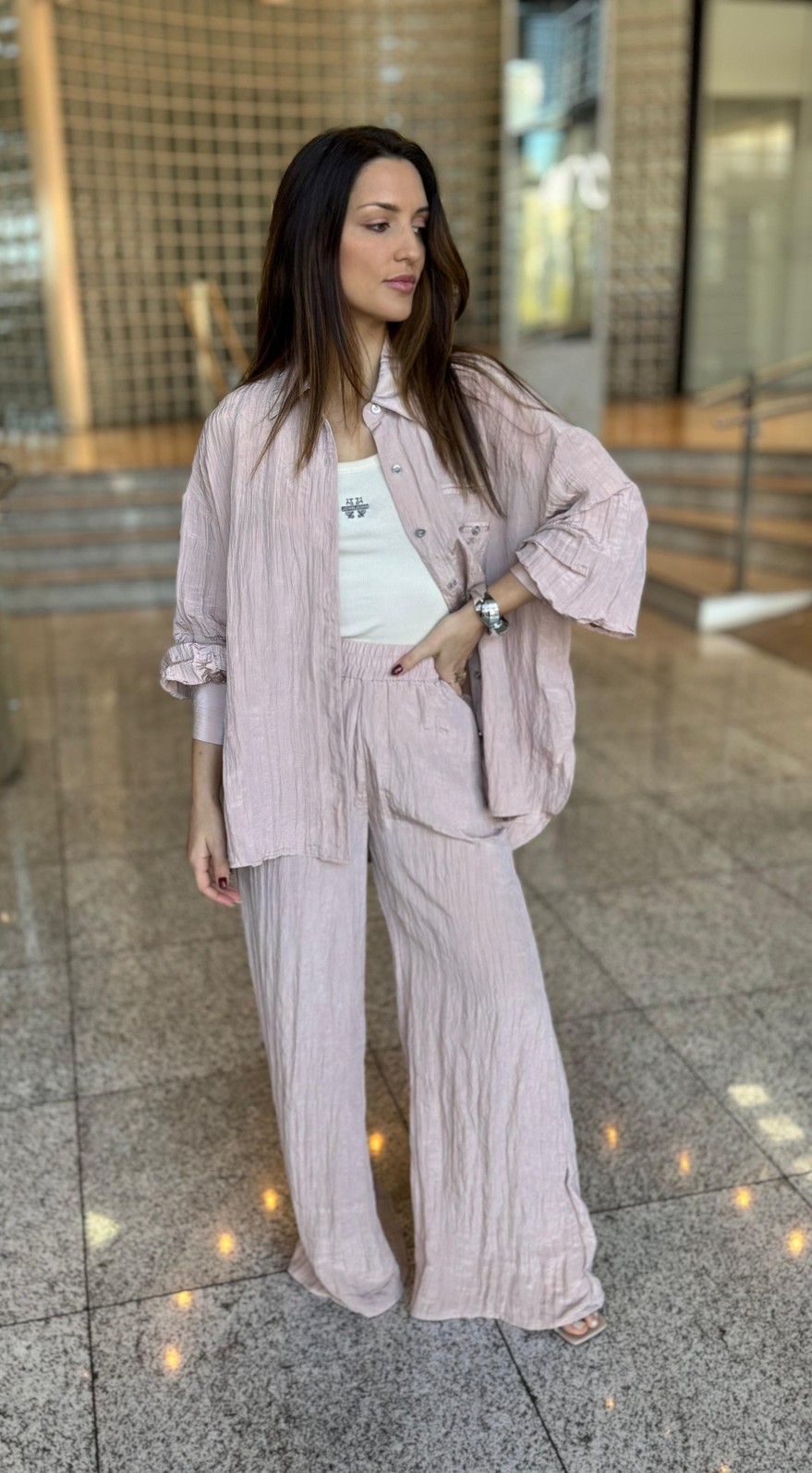 Cor/Estampa: Rosé acetinado, com textura delicada