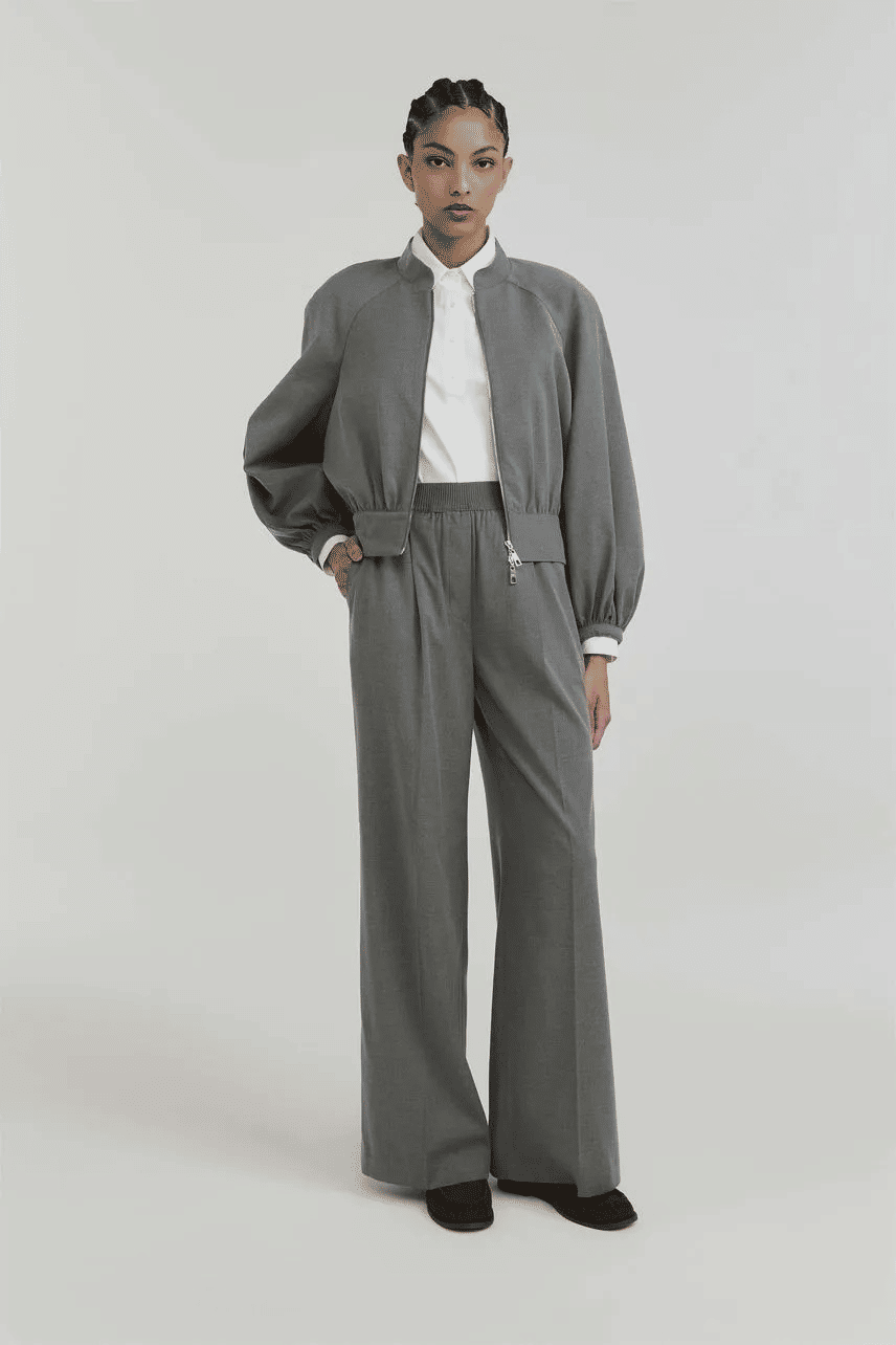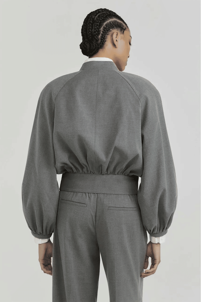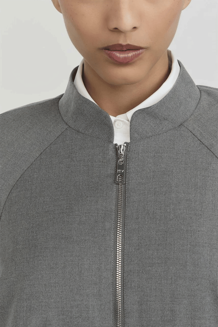 Jaqueta confeccionada em alfaiataria, com modelagem acinturada e acabamento sofisticado. Possui manga longa, gola padre e fechamento por zíper de metal com cursor duplo, que traz funcionalidade e informação de moda à peça. A barra reta reforça o visual contemporâneo, tornando-a ideal para composições urbanas e elegantes, seja coordenada com peças de alfaiataria ou em contrastes com itens mais casuais.
