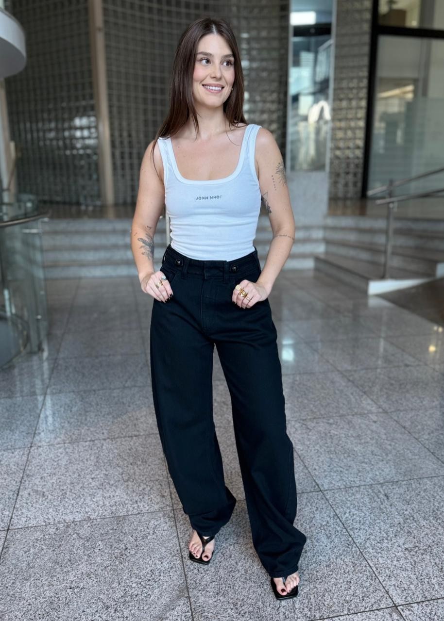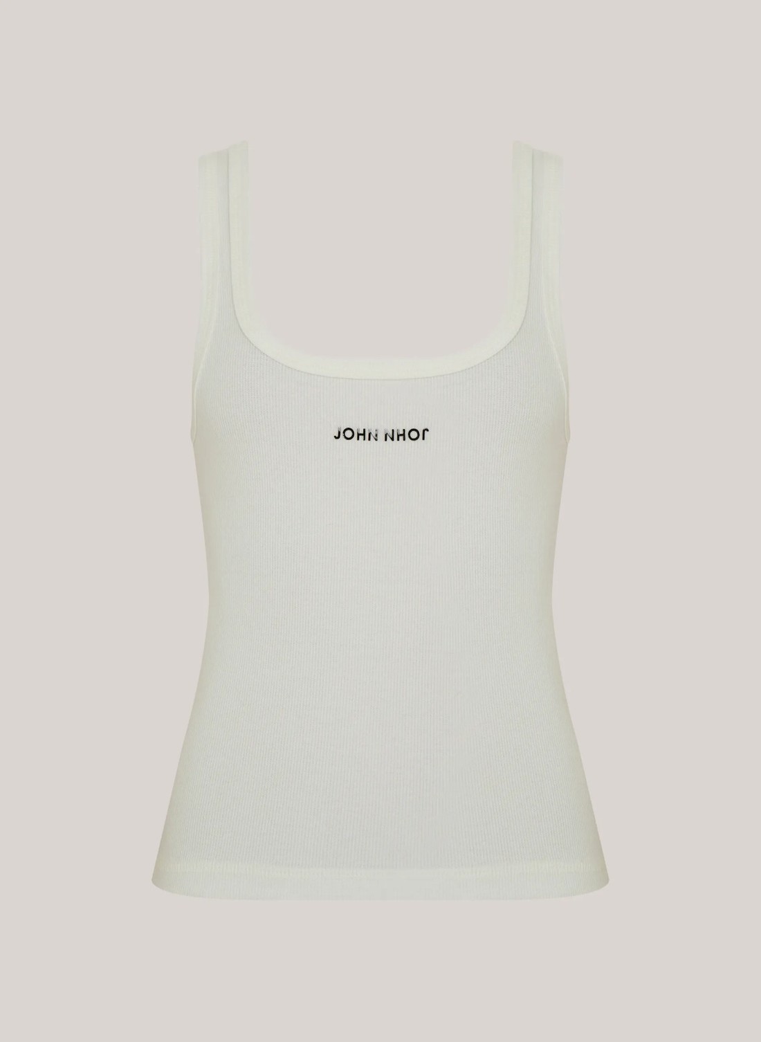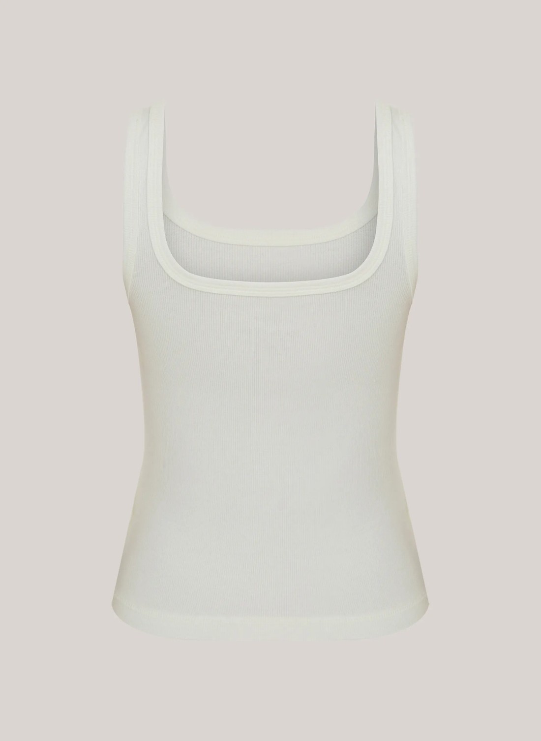 Confeccionada em malhacanelada, a Regata possui modelagem justa, decote reto, assinatura da marca em foil metalizado, alças finas e acabamento canelado. Cor: Off White