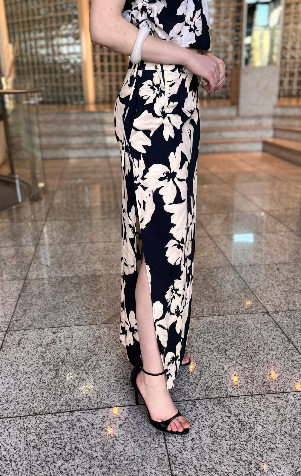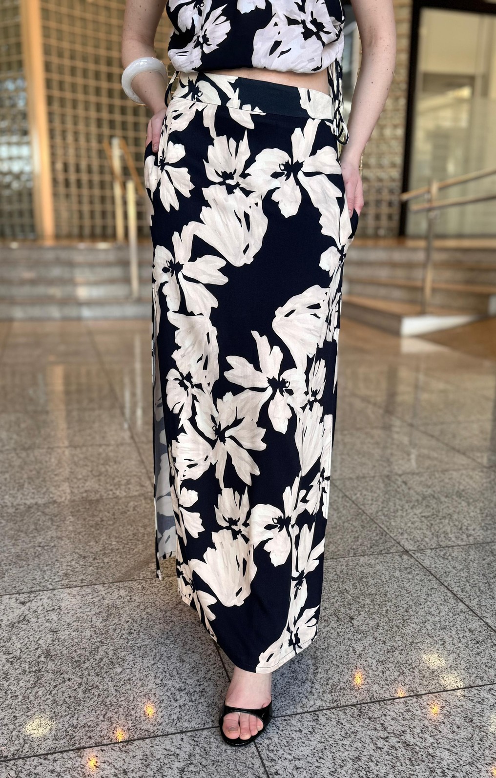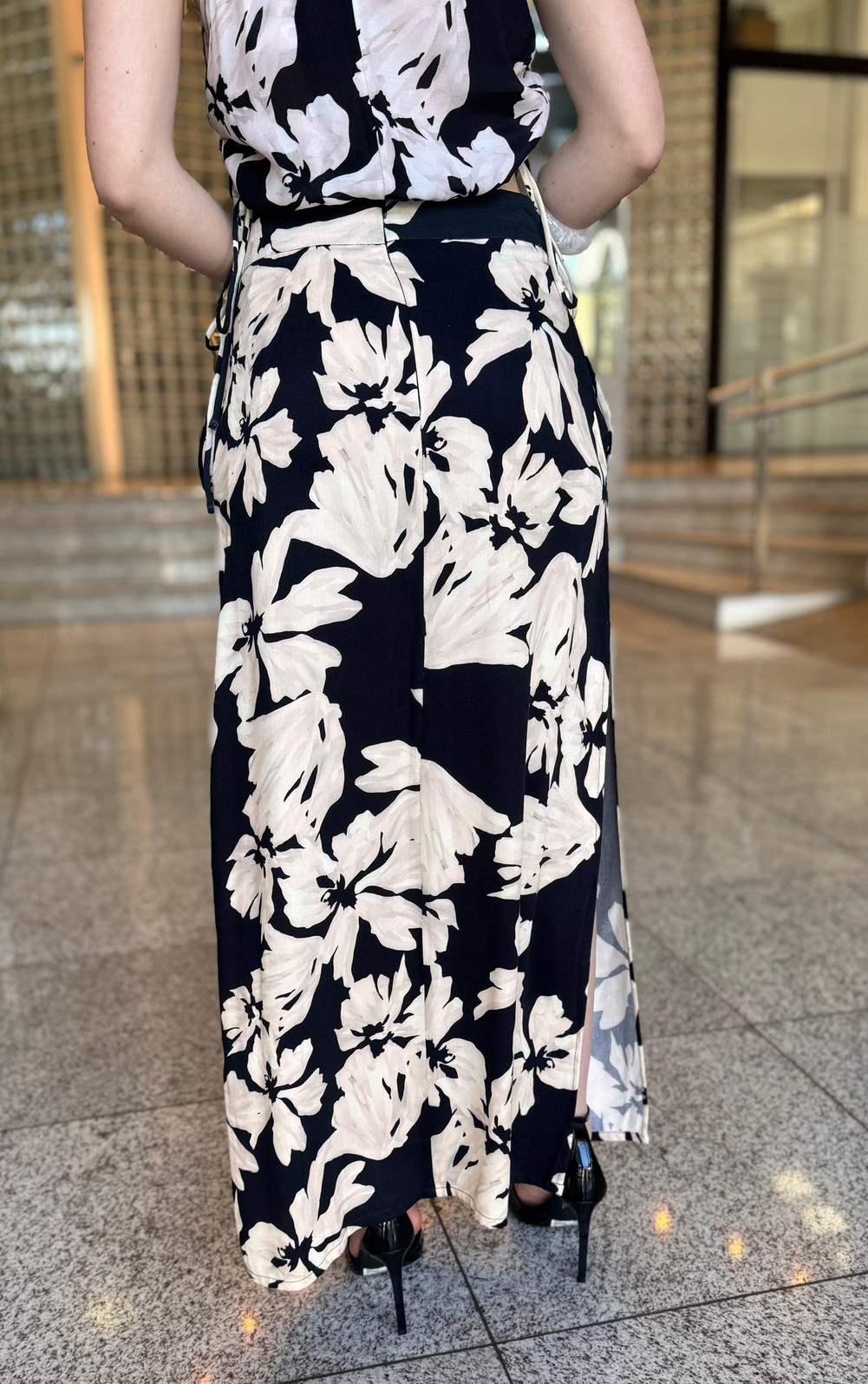 Confeccionada em tecido leve e fluido, a saia apresenta caimento impecável e confortável. O design com fenda lateral adiciona movimento e um toque de sensualidade discreta, enquanto a estampa de lírios traz delicadeza e personalidade ao look.