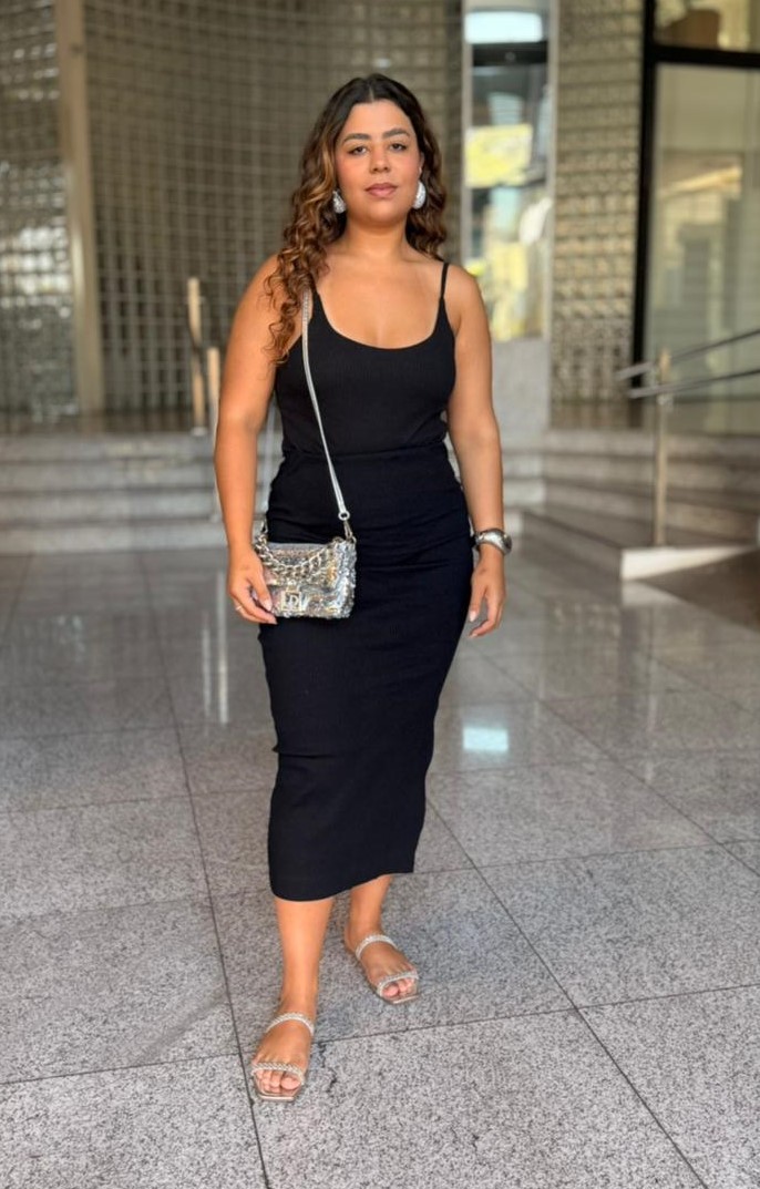 • Diferencial: Design minimalista com fenda que valoriza a silhueta