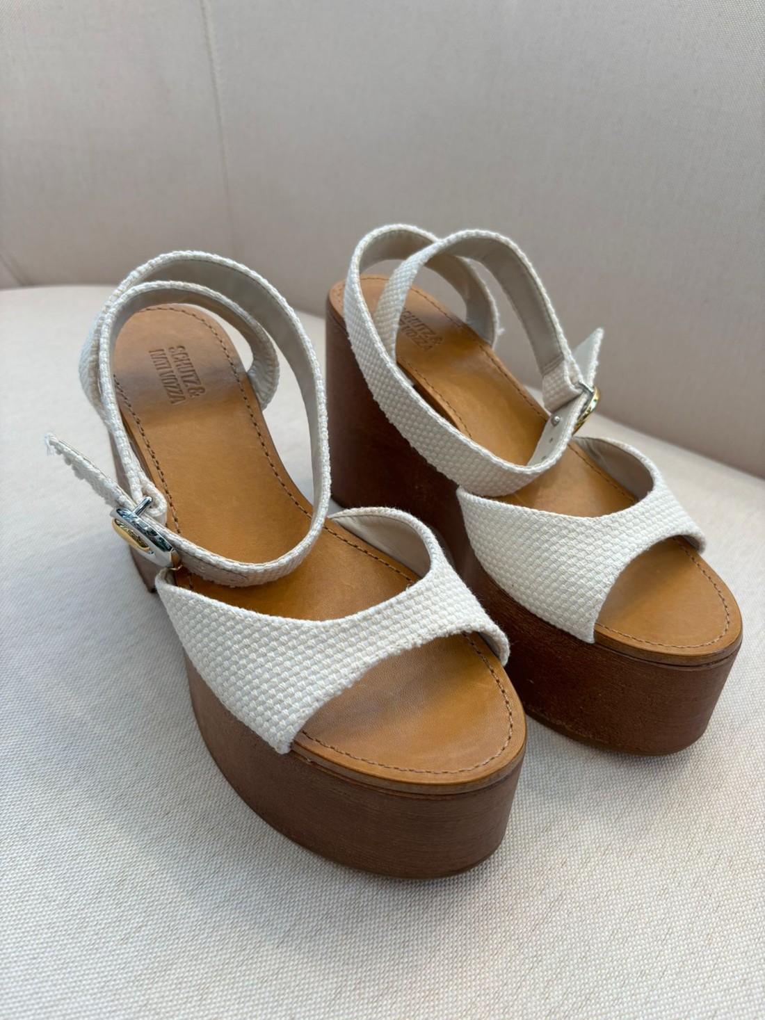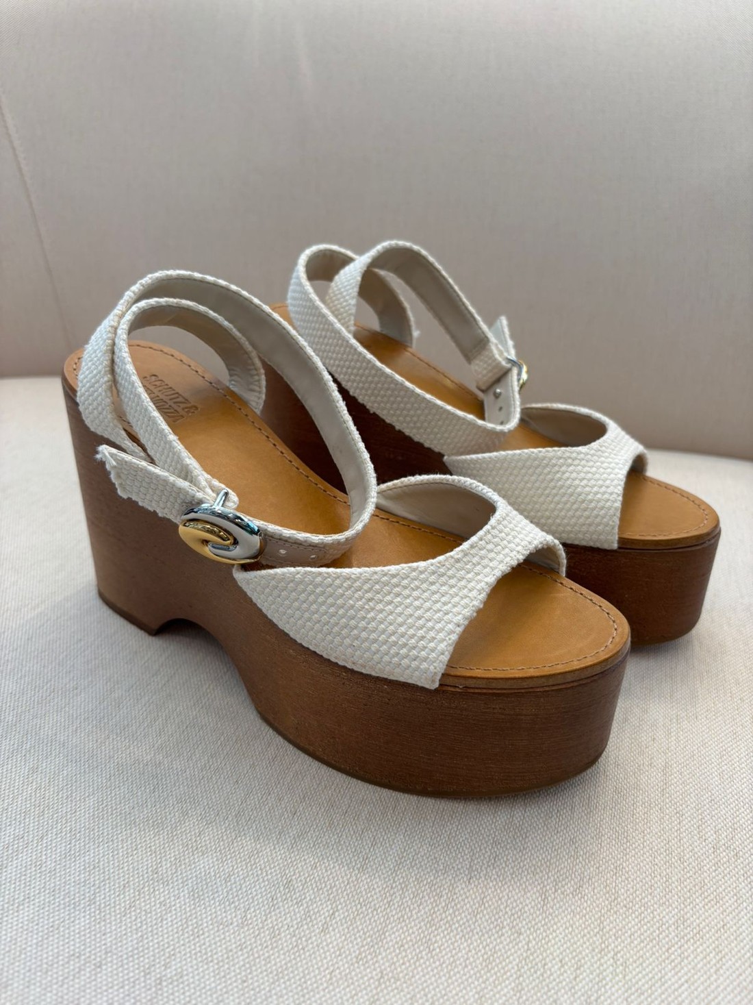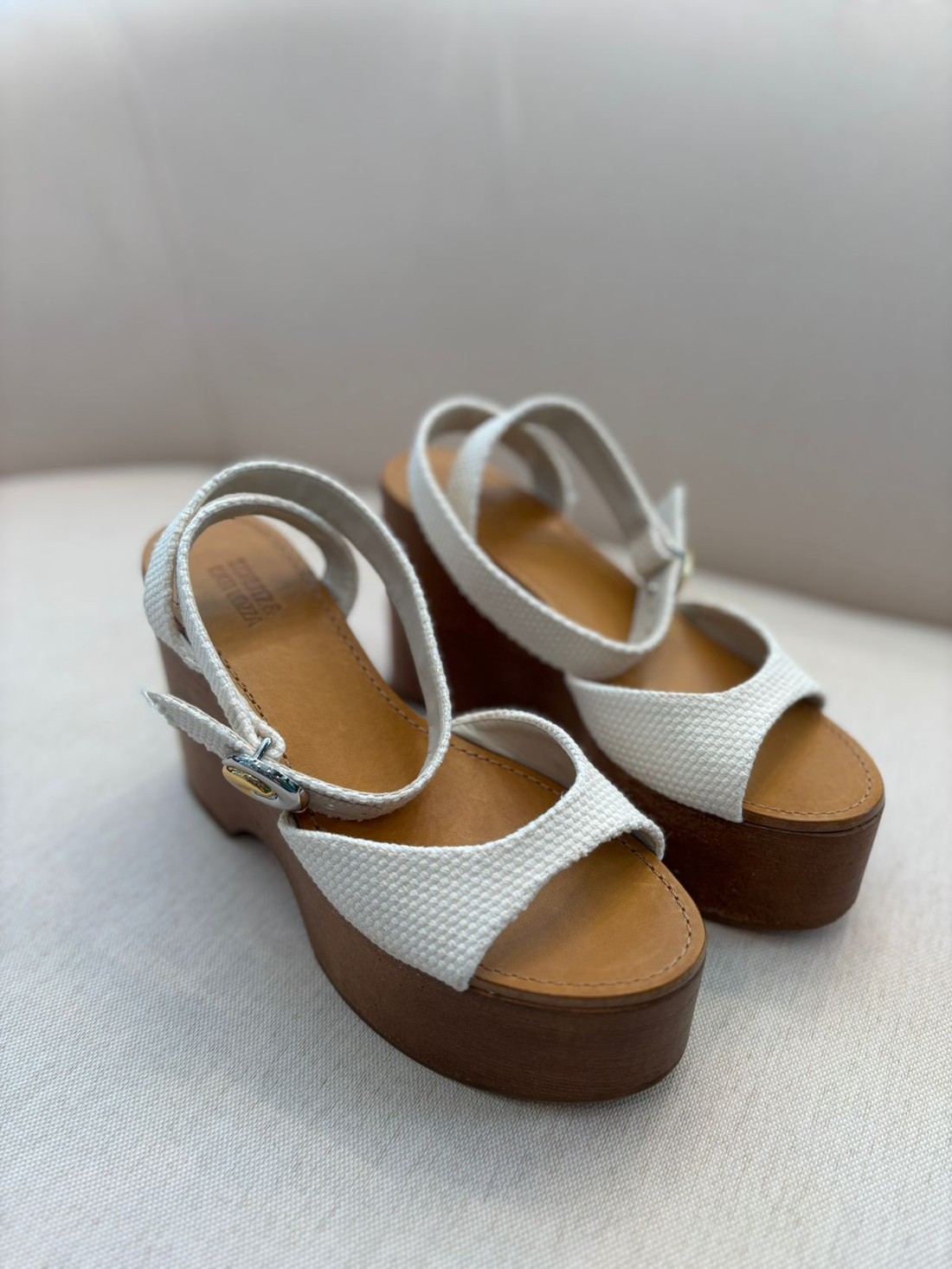 Com salto plataforma em madeira que garante altura com estabilidade, a sandália possui tiras em tecido bege de toque encorpado que abraçam o pé com conforto e estilo. O fechamento com fivela ajustável traz praticidade, enquanto o design clean com textura natural adiciona um ar contemporâneo e versátil que combina com vestidos, jeans ou produções mais sofisticadas.