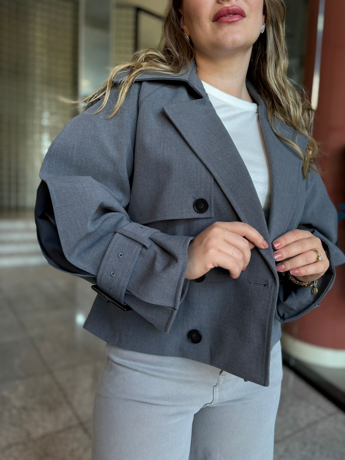 TRENCH COAT SAMANTHA CINZA MESCLA ESCURO NV