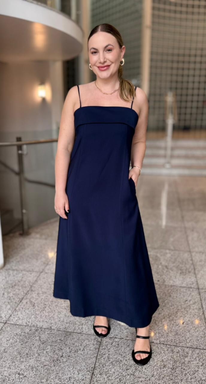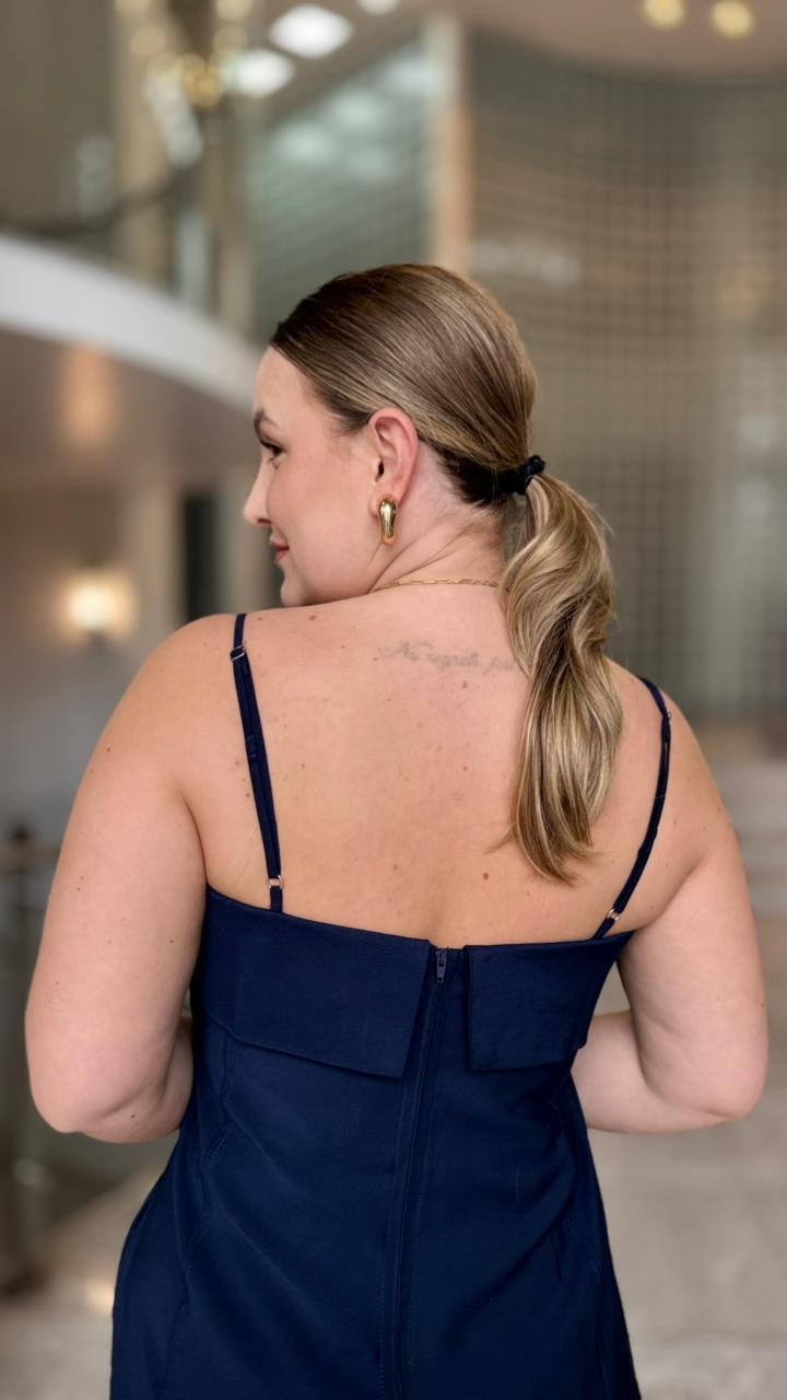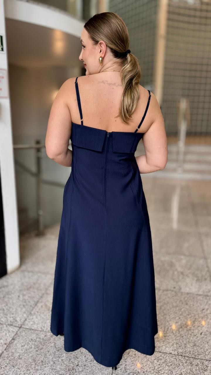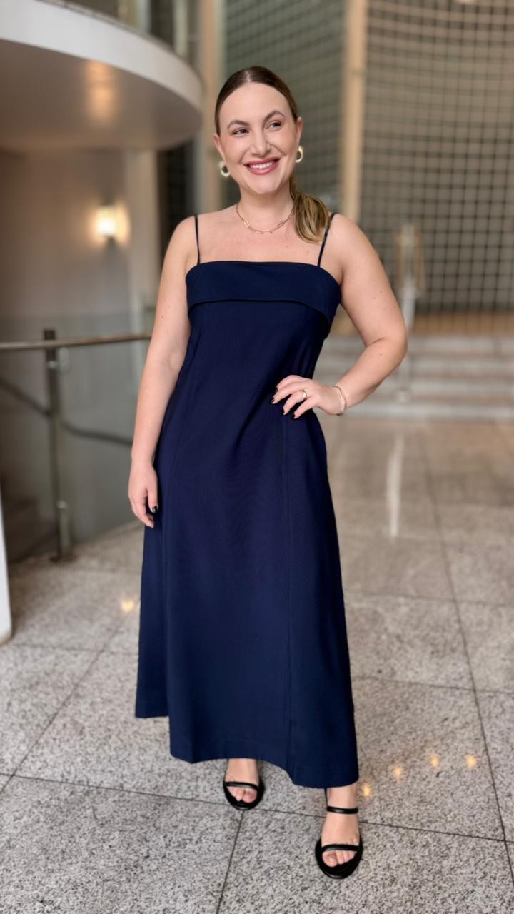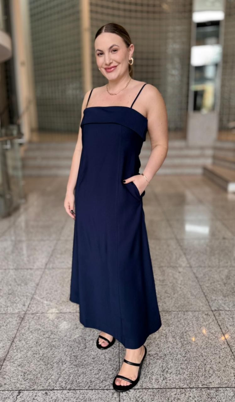 Descubra a elegância do Vestido Amiri Marinho: modelagem midi com caimento impecável, alça fina com regulador para ajuste perfeito e lapela no decote frente e costas. O detalhe de pesponto lateral valoriza a silhueta, enquanto o bolso lateral une praticidade e estilo. O fechamento em zíper nas costas garante sofisticação e conforto. Ideal para quem busca versatilidade e requinte em uma única peça.