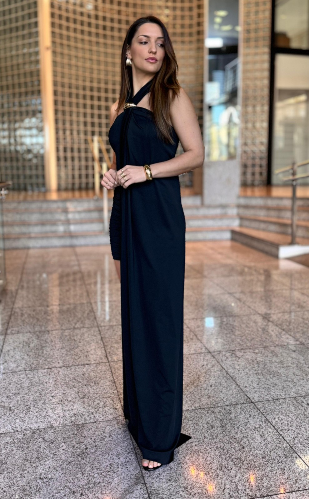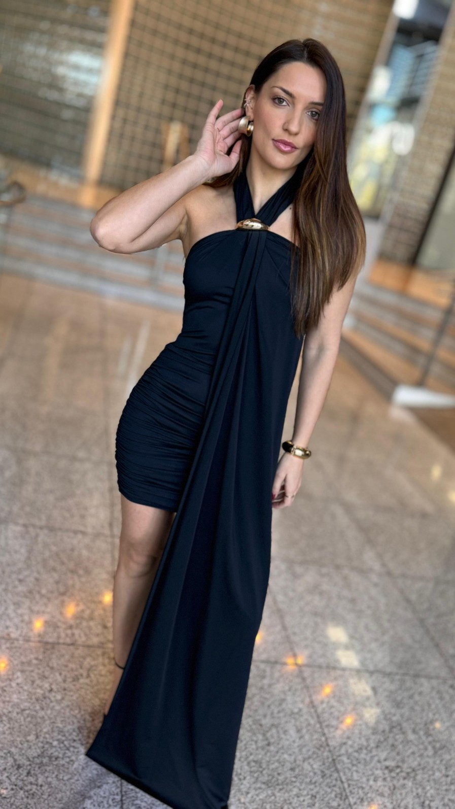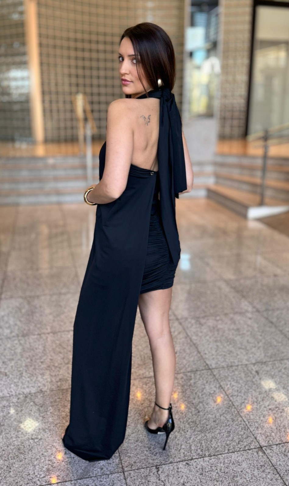 Produzido em malha leve, o vestido curto apresenta frente única com amarração nas costas e aviamento metálico. Seu shape justo exibe drapeados estratégicos e uma sobreposição lateral longa que atualiza a silhueta. Contemporâneo e feito para impressionar!
