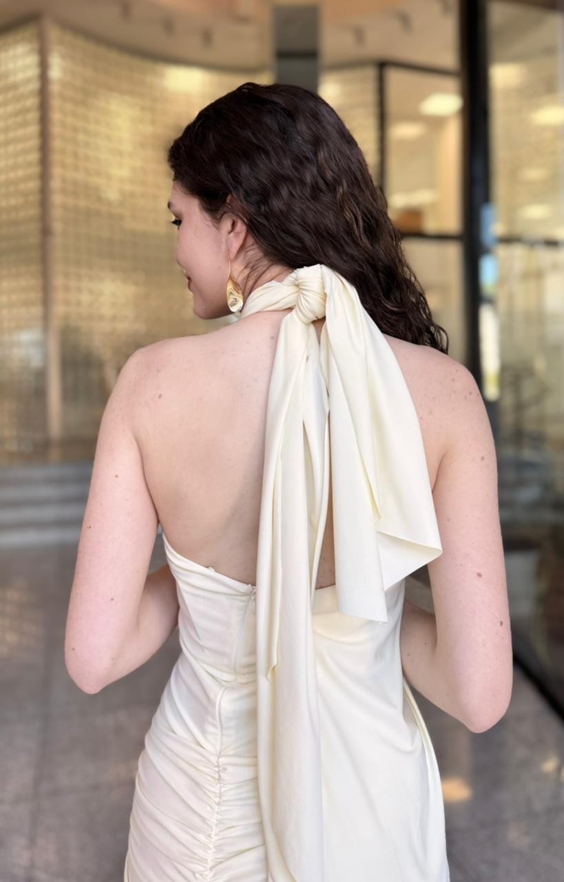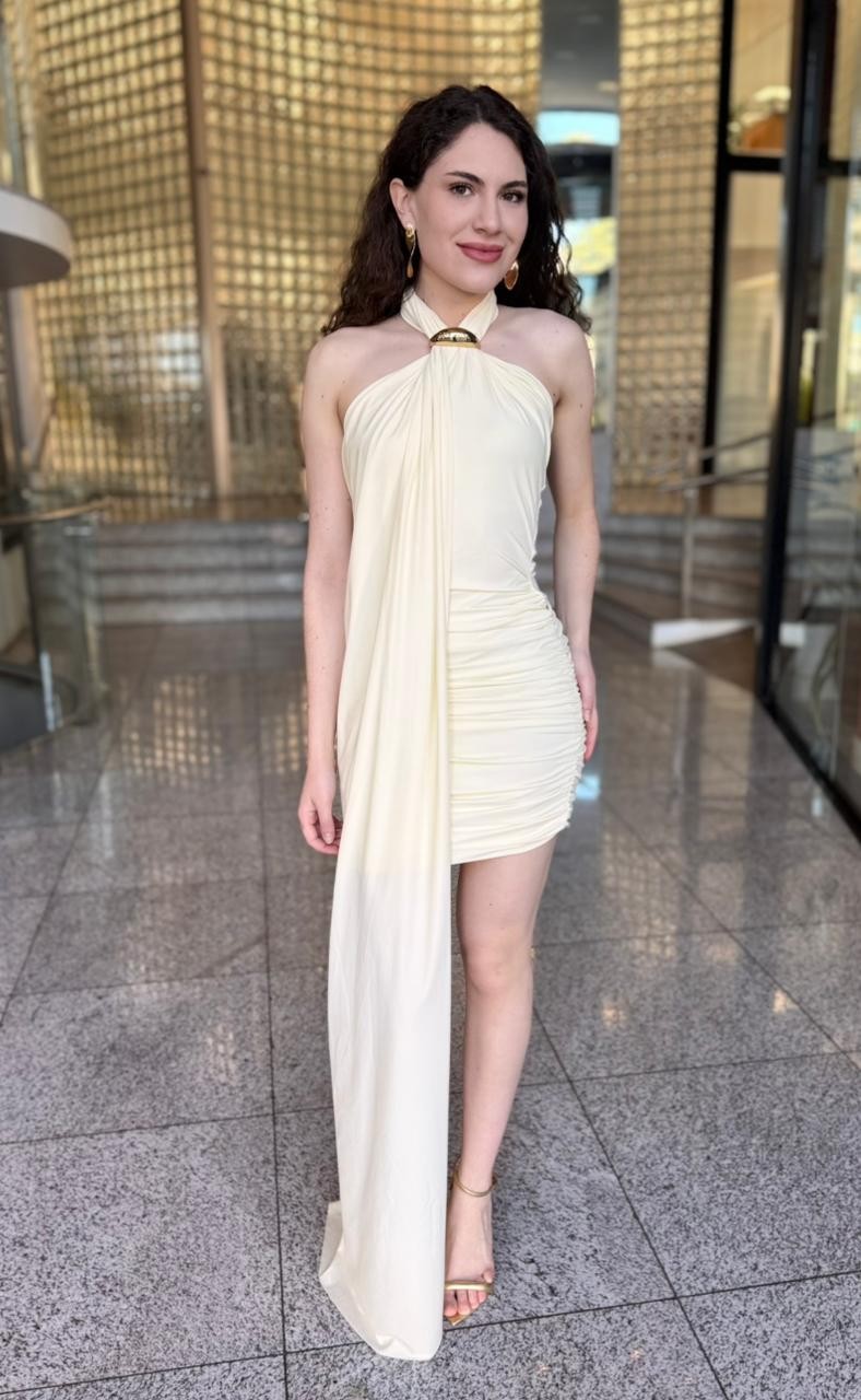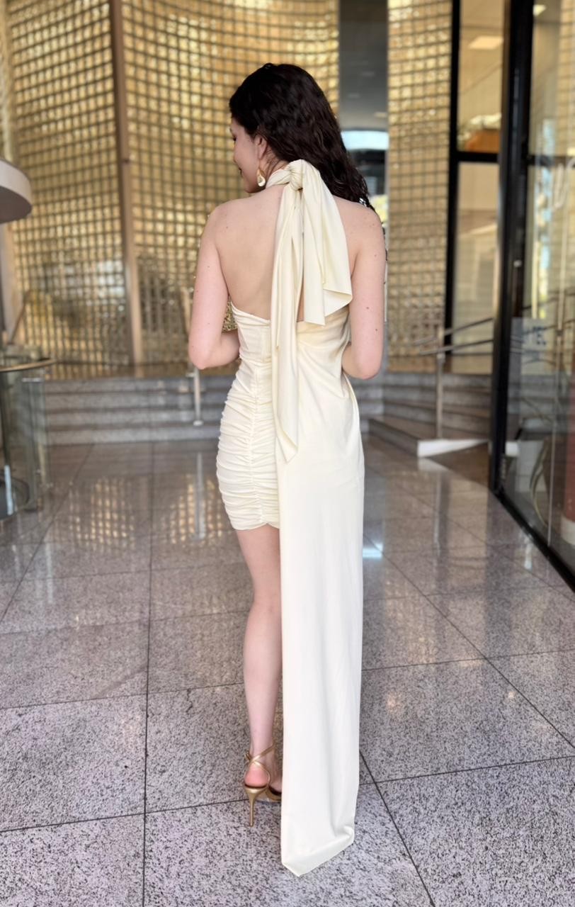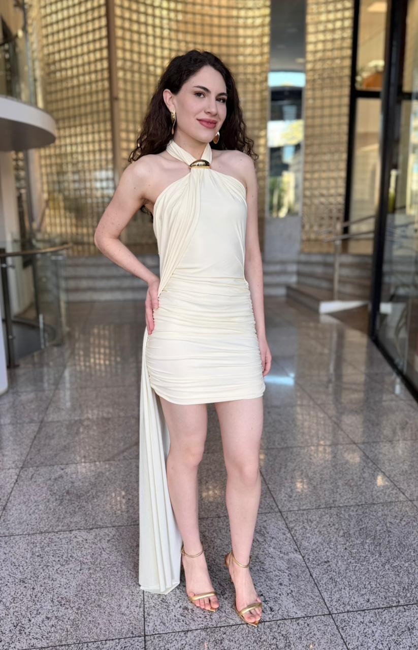 AdicionarVESTIDO CURTO COM SOBREPOSICAO OFF WHITE LANÇA PERFUME