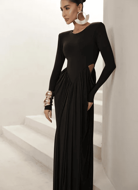 O Vestido Manga Longa com Saia Lateral Drapeada é a escolha perfeita para quem busca elegância sofisticada com um toque moderno e atemporal. Com design refinado e caimento impecável, a peça valoriza a silhueta de forma delicada e extremamente feminina.