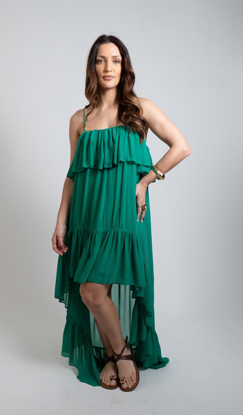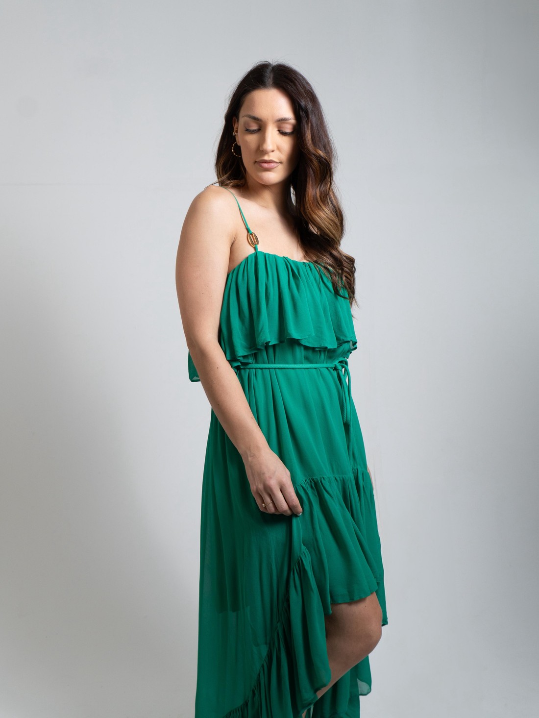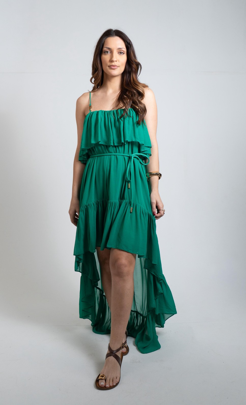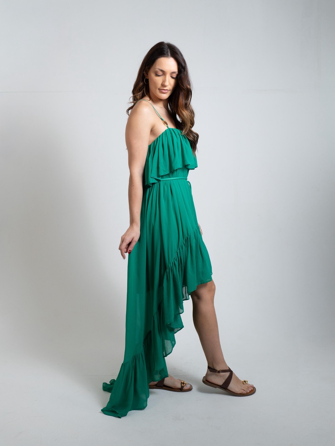 VESTIDO MULLET DE CHIFFON VERDE LANÇA PERFUME