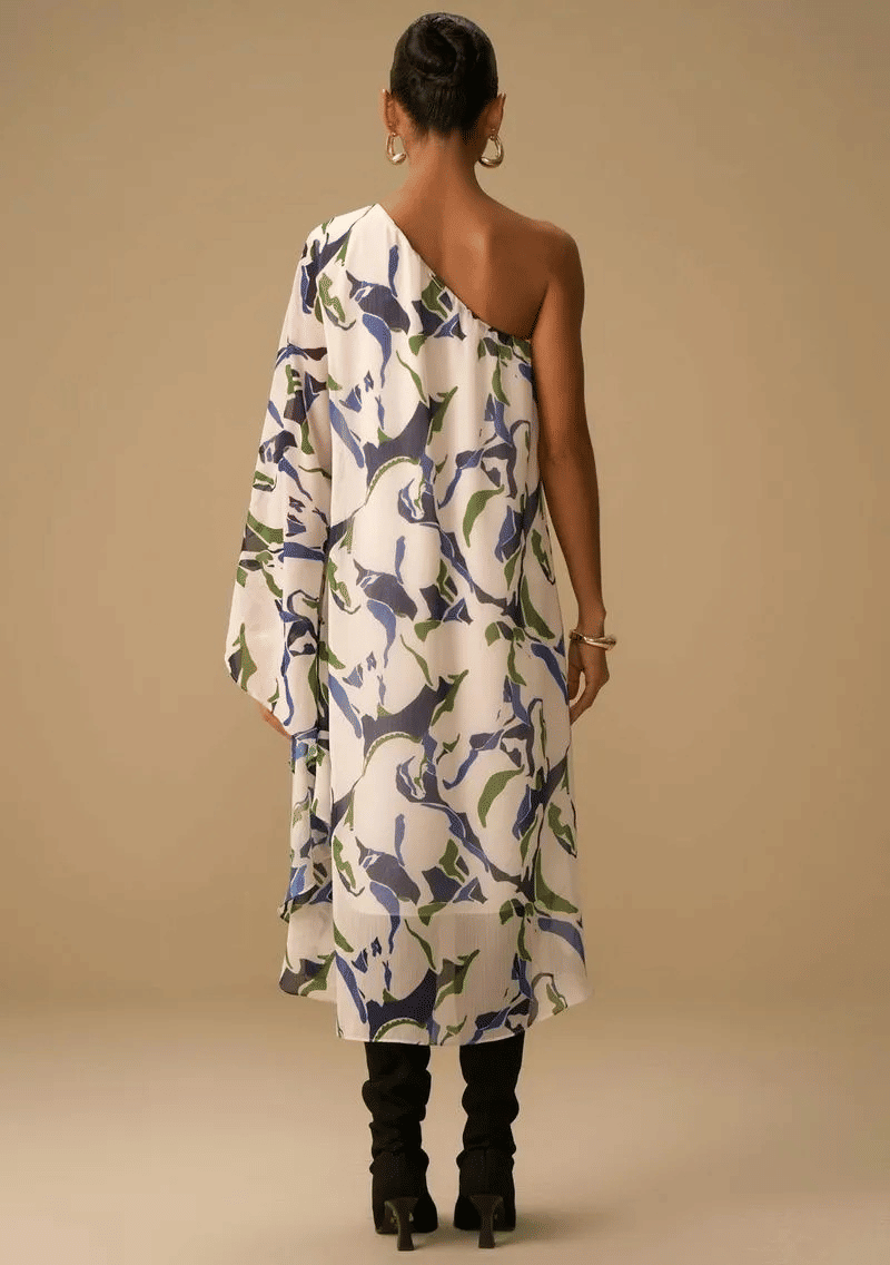 O Vestido Solto Um Ombro da Maria Valentina é pura expressão de modernidade e sofisticação. Com modelagem fluida e caimento leve, ele traduz um estilo marcante e elegante sem abrir mão do conforto. A estampa artística em tons de azul e verde traz frescor e personalidade, enquanto o design de um ombro só adiciona ousadia na medida certa, criando uma silhueta impactante e atemporal.
